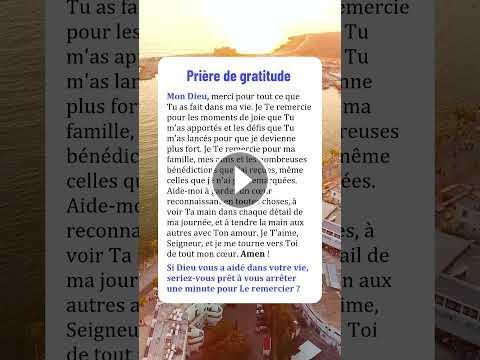 Mon Dieu, merci pour tout ce que Tu as fait dans ma vie. Je Te remercie pour les moments de joie que Tu m'as apportés et les défis que Tu m'as lancés pour que je devienne plus fort. Je Te remercie pour ma famille, mes amis et les nombreuses bénédictions que j'ai reçues, même celles que je n'ai pas remarquées. Aide-moi à garder un cœur reconnaissant en toutes choses, à voir Ta main dans chaque détail de ma journée, et à tendre la main aux autres avec Ton amour. Je T'aime, Seigneur, et je me tourne vers Toi de tout mon cœur. Amen !