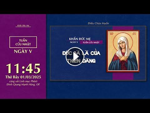 Mời cộng đoàn cùng tham dự Tuần Cửu Nhật Khấn Đức Mẹ - Ngày Thứ Năm: Đức Mẹ Là Cửa Thiên Đàng (Mùa Thường Niên) vào lúc 11:45 Thứ Bảy ngày 01/03/2025 do Lm. Phêrô Đinh Quang Mạnh Hùng, OP. hướng dẫn.