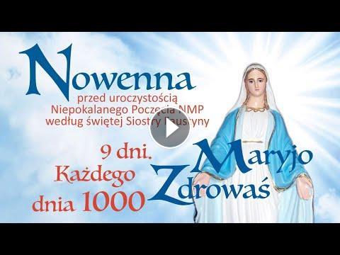 Nowenna przed Niepokalanym Poczęciem NMP według św. Faustyny jest wyrazem naszej miłości do Niepokalanej. Razem ze św. Faustyną i św. Maksymilianem dziękujemy Bogu za Niepokalane Poczęcie Maryi. Każde Zdrowaś Maryjo to jedna róża Jej ofiarowana w duchowym koszu. Według Dzienniczka (1412-1414) św. Faustyna trzykrotnie odprawiła Nowennę przed uroczystością Niepokalanego Poczęcia NMP, składającą się z odmówienia tysiąc razy dziennie Zdrowaś Maryjo.