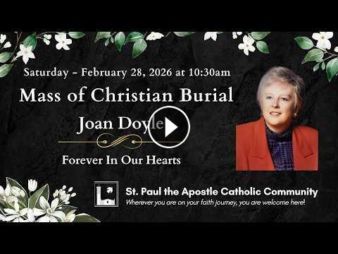 Welcome to our Mass of Christian Burial for Joan Doyle. Our 10:30 am mass is live-streamed from St. Paul the Apostle Catholic Community in Los Angeles, California, a ministry of the Paulist Fathers.
